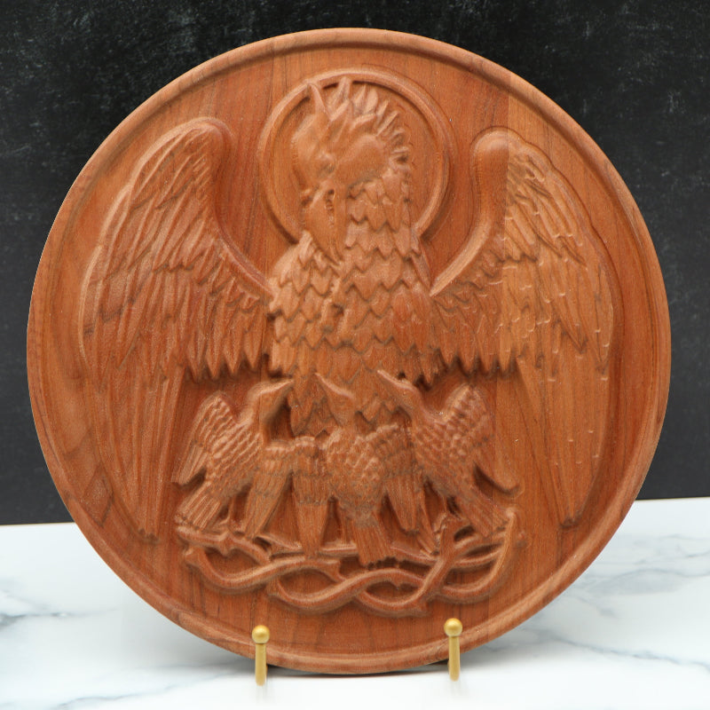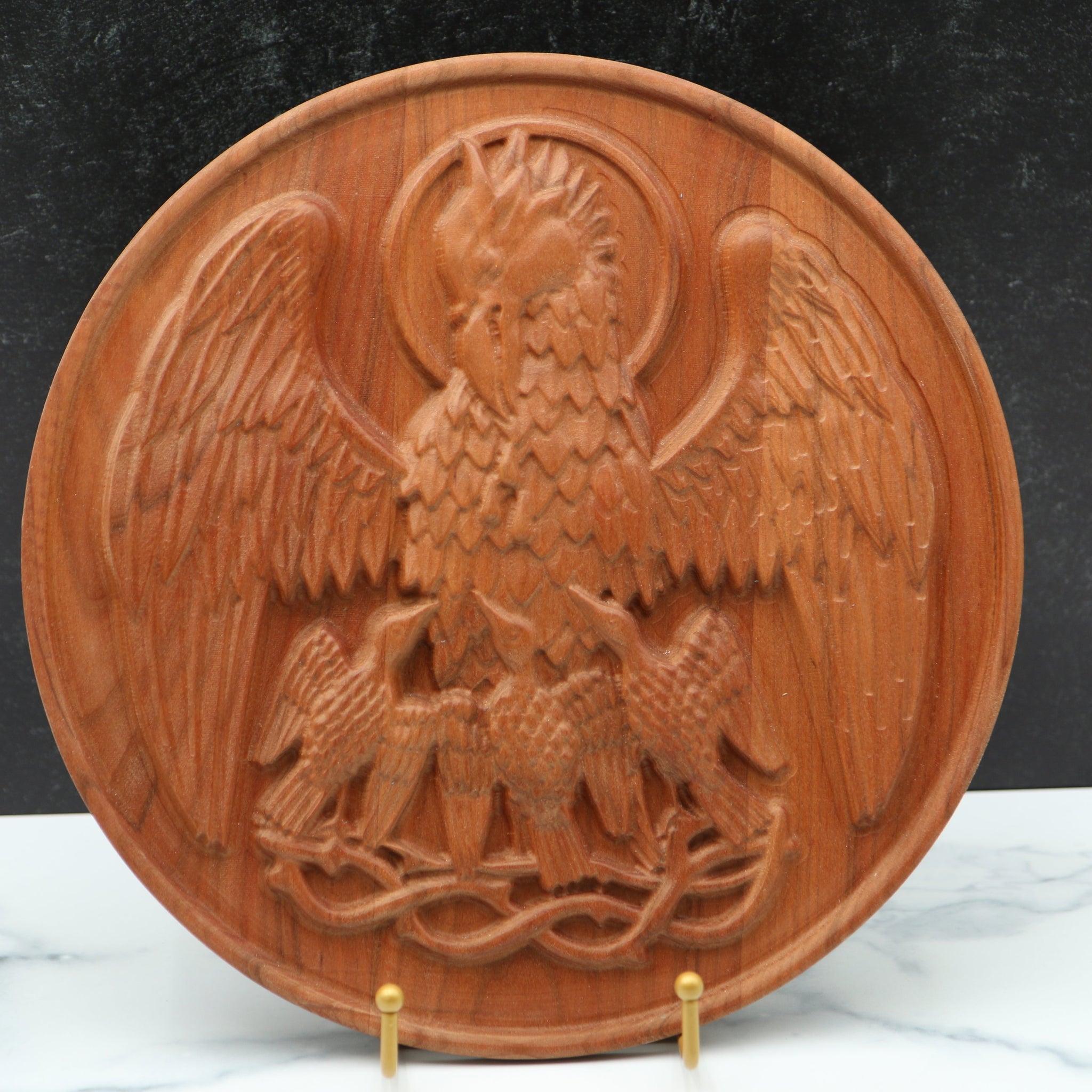 This unique custom 3D carving of the Pelican in Her Piety is a beautiful and thoughtful gift for every church and home! In medieval bestiaries, the Pelican was often pictured...