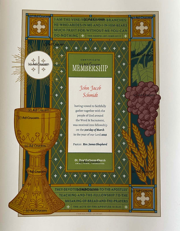 Ad Crucem Congregational Confirmation Certificate - Unlimited Printing