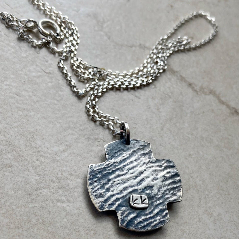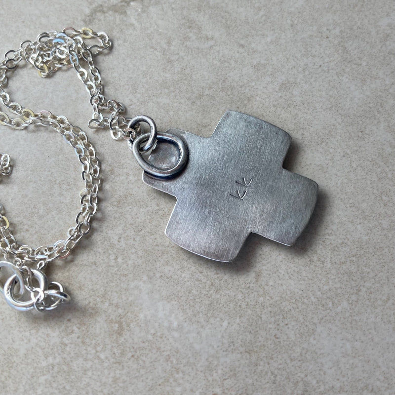 Kathy’s Handcrafted Stenciled Silver Cross Necklace