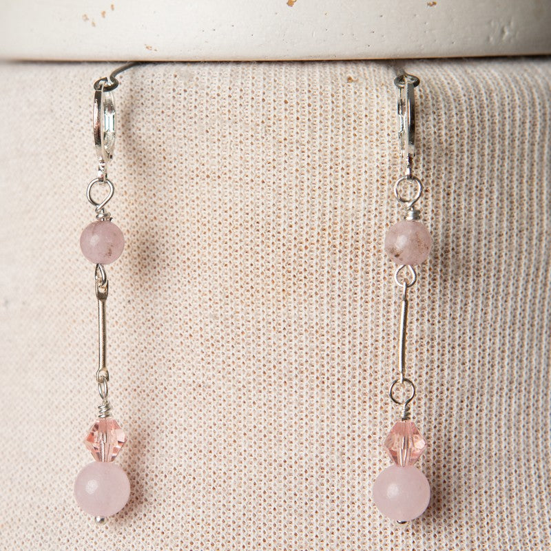 Jennifer's Rose Quartz and Moonstone Baptism Necklace and Earring Set