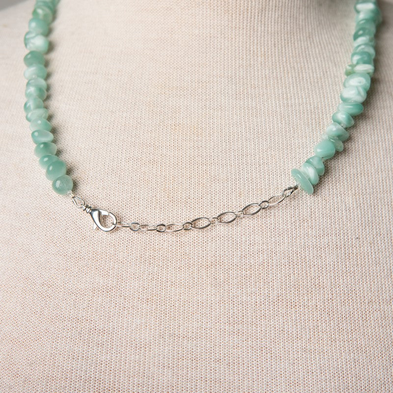 Jennifer's Russian Amazonite Nugget Baptism Shell Necklace and Earring Set