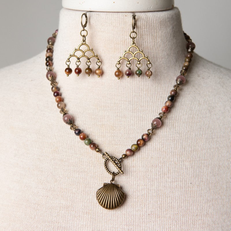 Jennifer's Tiger Eye Shell Necklace and Earring Set