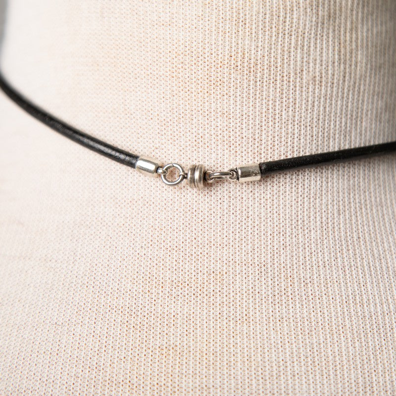 – Sold Out20" of simple black leather cord displays a vintage Luther's Rose medallion. The medallion is about 44mm in size.